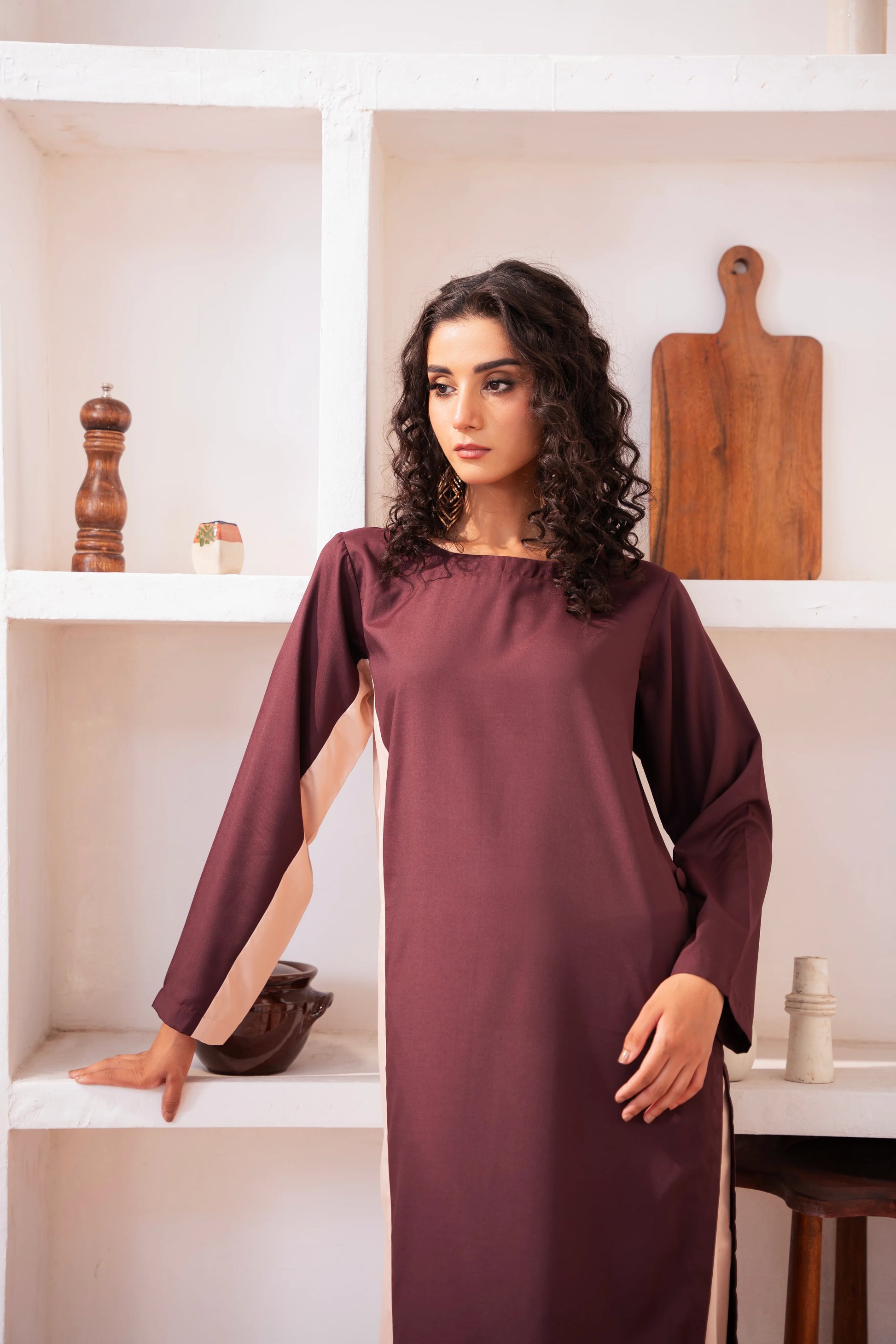 This two-piece dress includes a stylish frock and tailored trouser. This dress is crafted from our new soft crepe fabric, known for its sweat-absorbing properties, ensuring comfort throughout the day. Designed to blend contemporary Western styles with subtle traditional touches. The dress is shown here in size small, perfectly fitted on the model. Length of Shirt, Sleeve Opening & Shirttail are as per Design. Actual color may vary slightly from what appears on your screen due to lighting.