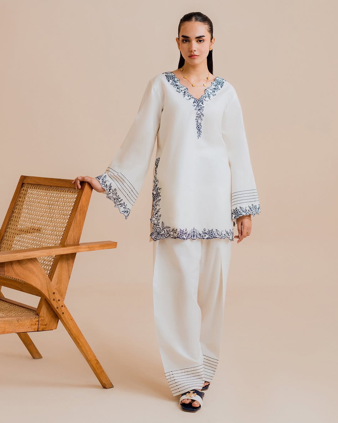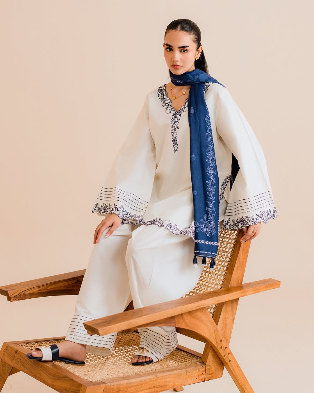 ✔ Design: A 3-piece set (Dupta + kurta + trousers/shalwar) with a tailored fit and contemporary silhouette.