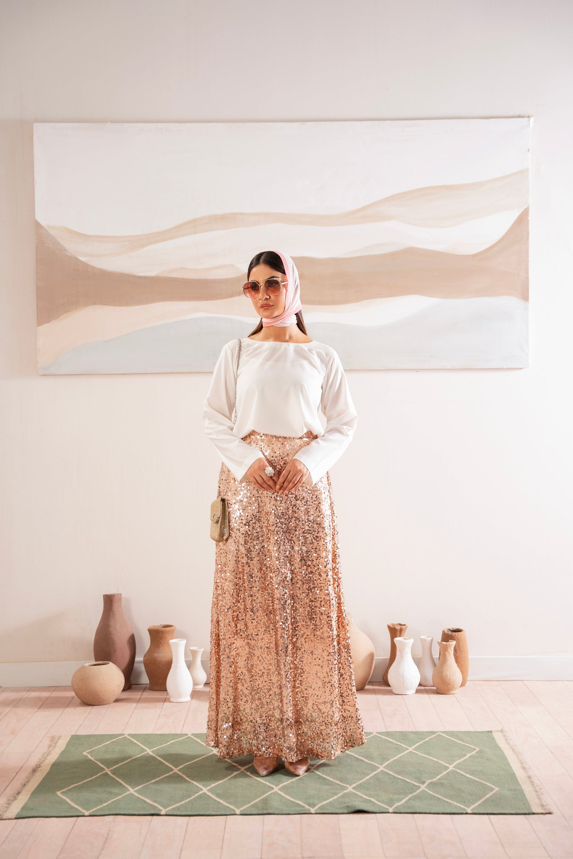 This two-piece dress includes a stylish frock and tailored trouser. This dress is crafted from our new soft crepe fabric, known for its sweat-absorbing properties, ensuring comfort throughout the day. Designed to blend contemporary Western styles with subtle traditional touches. The dress is shown here in size small, perfectly fitted on the model. Length of Shirt, Sleeve Opening & Shirttail are as per Design. Actual color may vary slightly from what appears on your screen due to lighting.