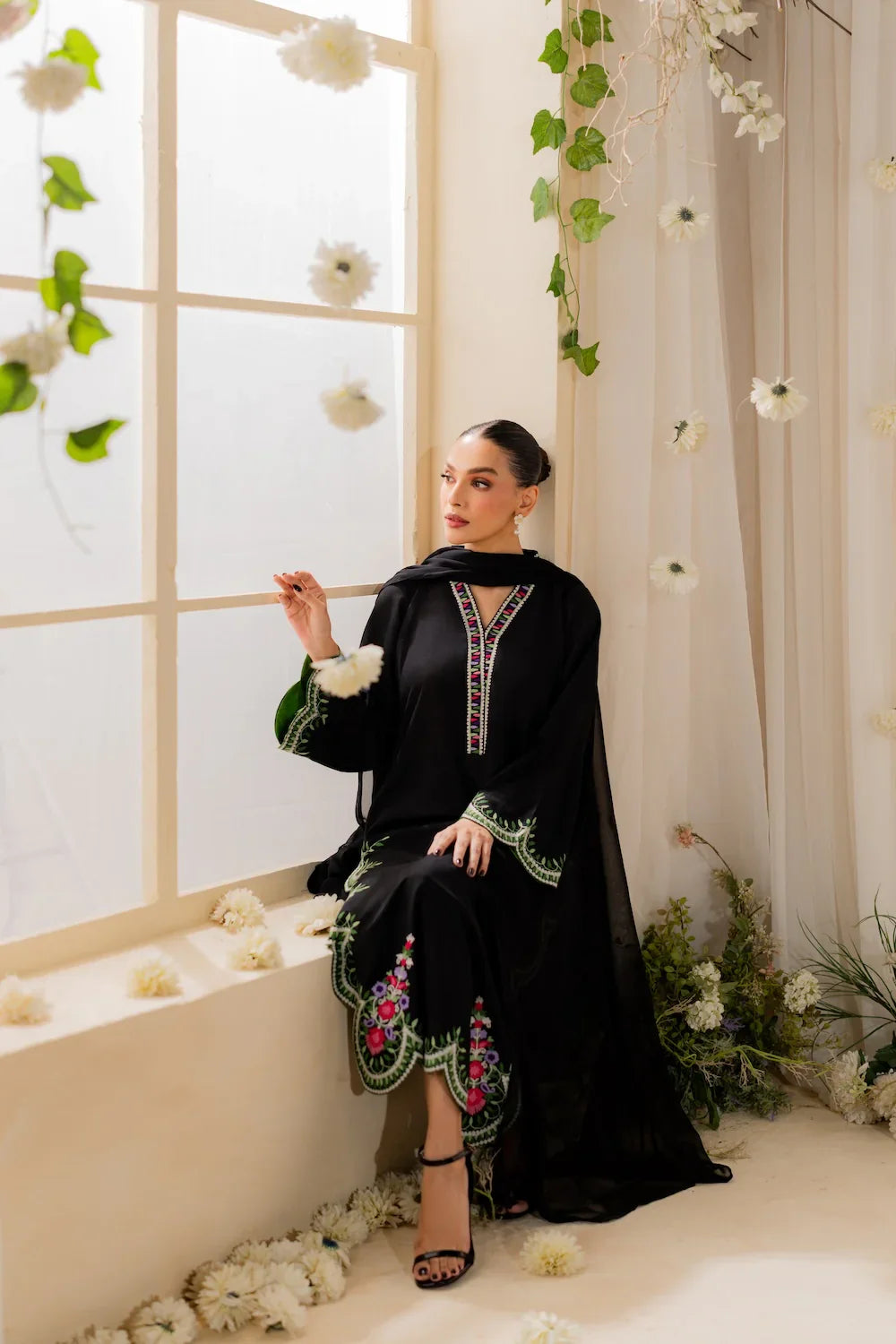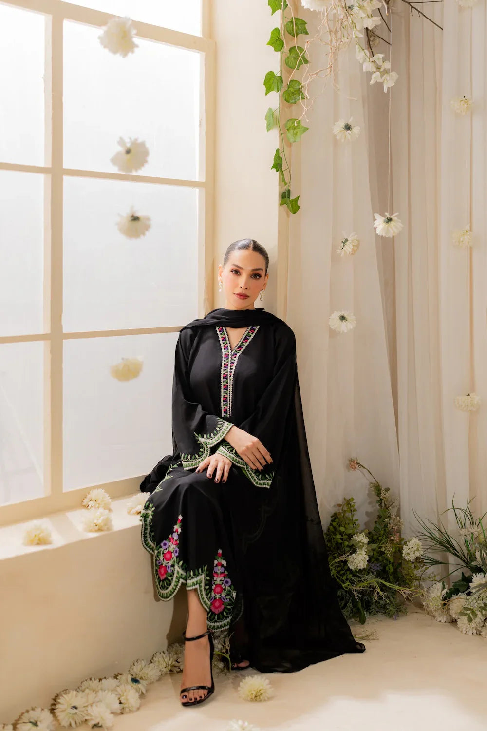 ✔ Design: A 3-piece set (Dupta + kurta + trousers/shalwar) with a tailored fit and contemporary silhouette.