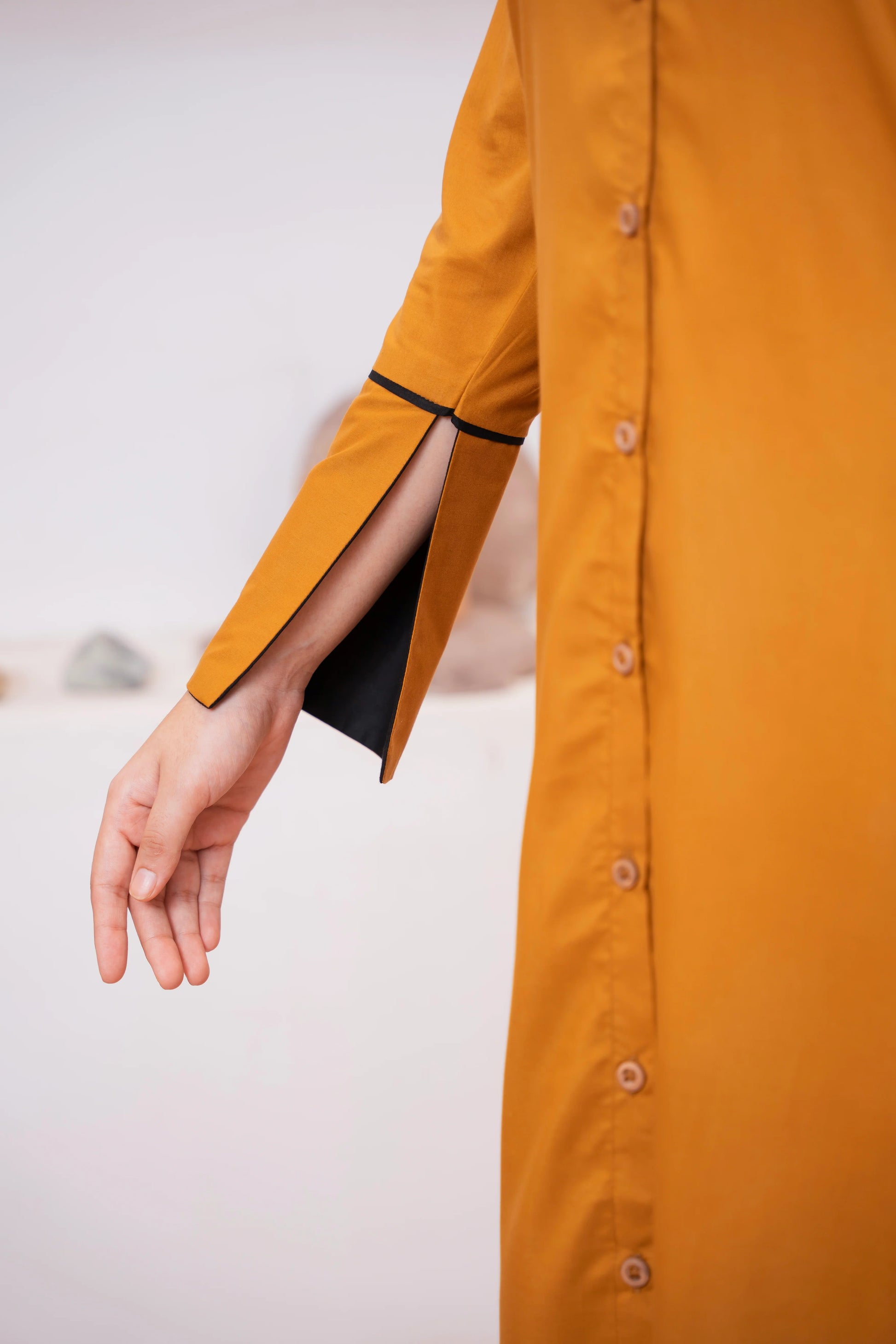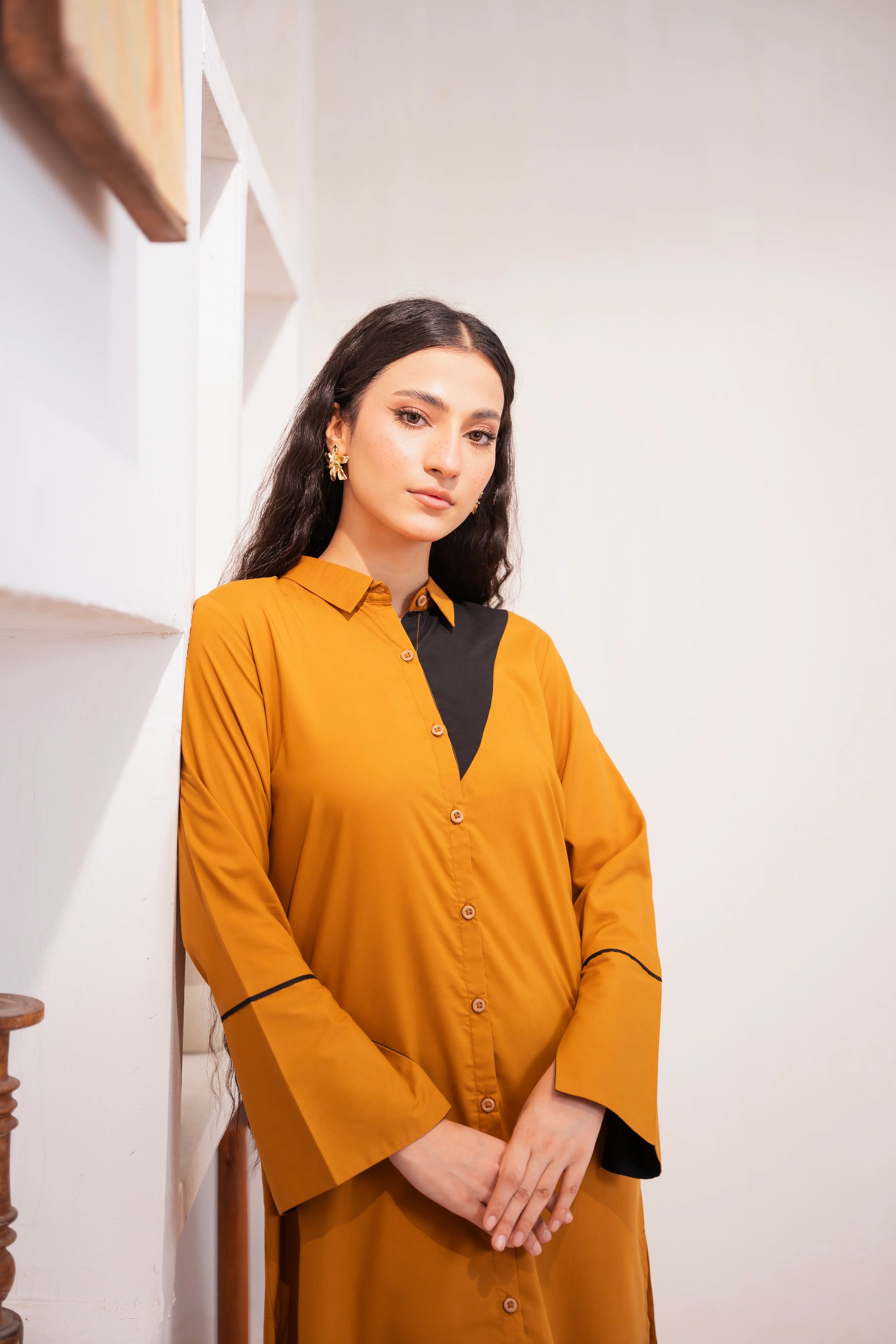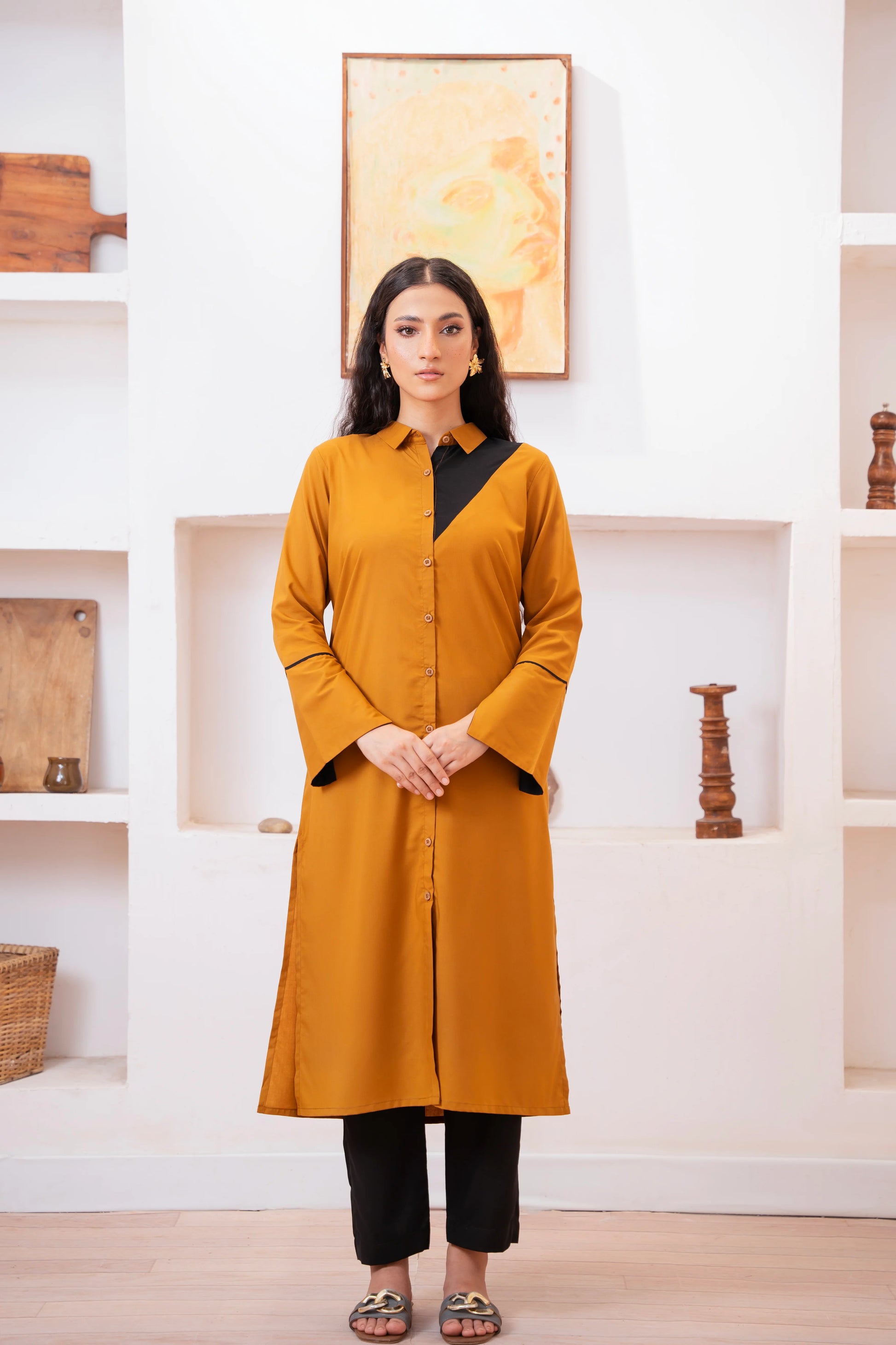 This two-piece dress includes a stylish frock and tailored trouser. This dress is crafted from our new soft crepe fabric, known for its sweat-absorbing properties, ensuring comfort throughout the day. Designed to blend contemporary Western styles with subtle traditional touches. The dress is shown here in size small, perfectly fitted on the model. Length of Shirt, Sleeve Opening & Shirttail are as per Design. Actual color may vary slightly from what appears on your screen due to lighting.