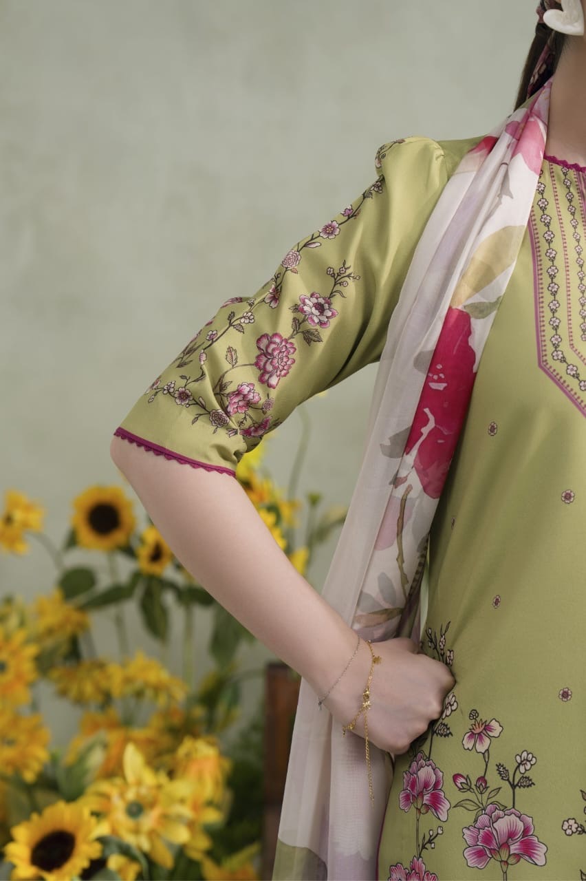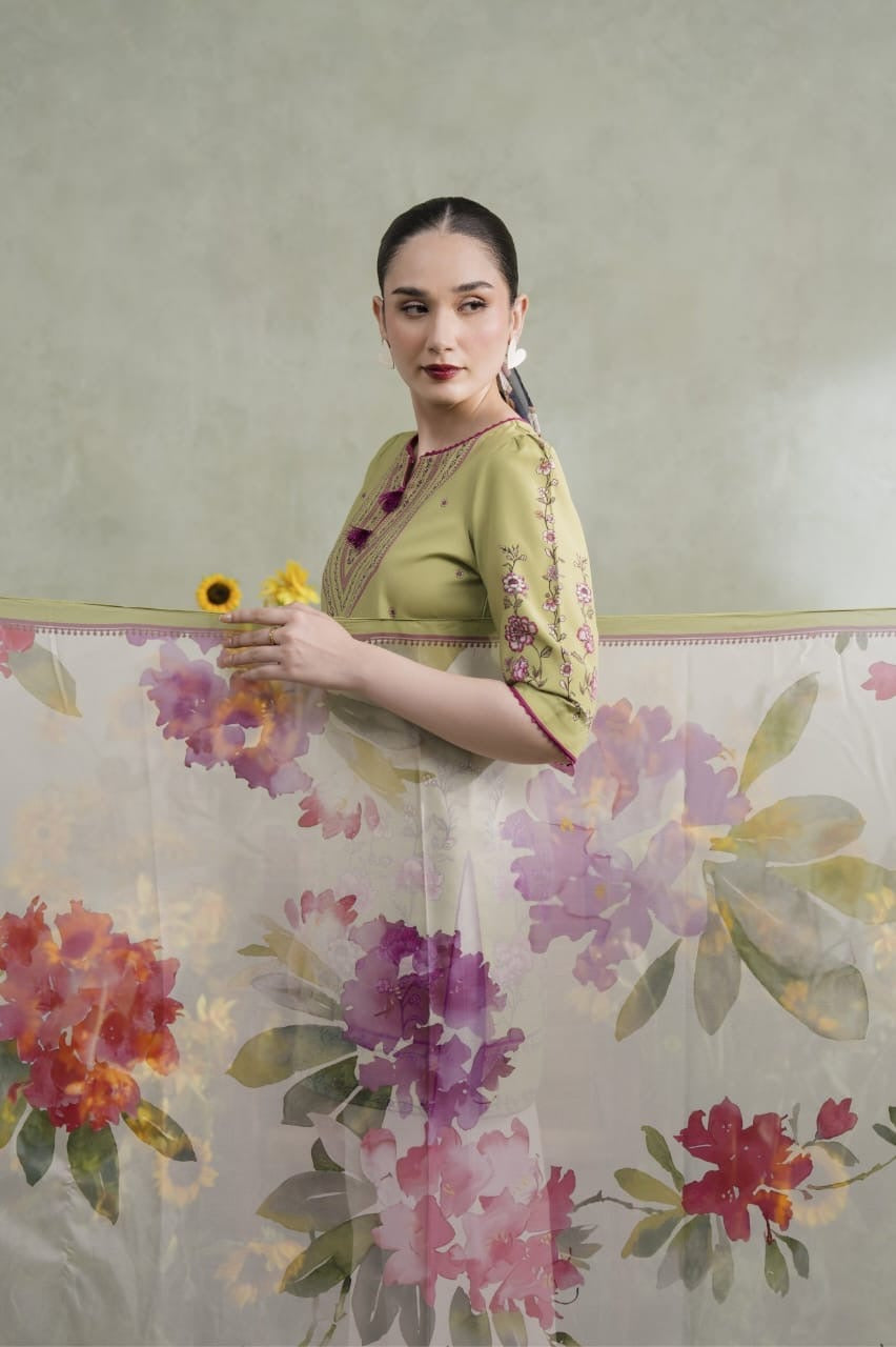 ✔ Design: A 3-piece set (kurta + dupatta + straight-trousers/shalwar) with a modern, relaxed fit.