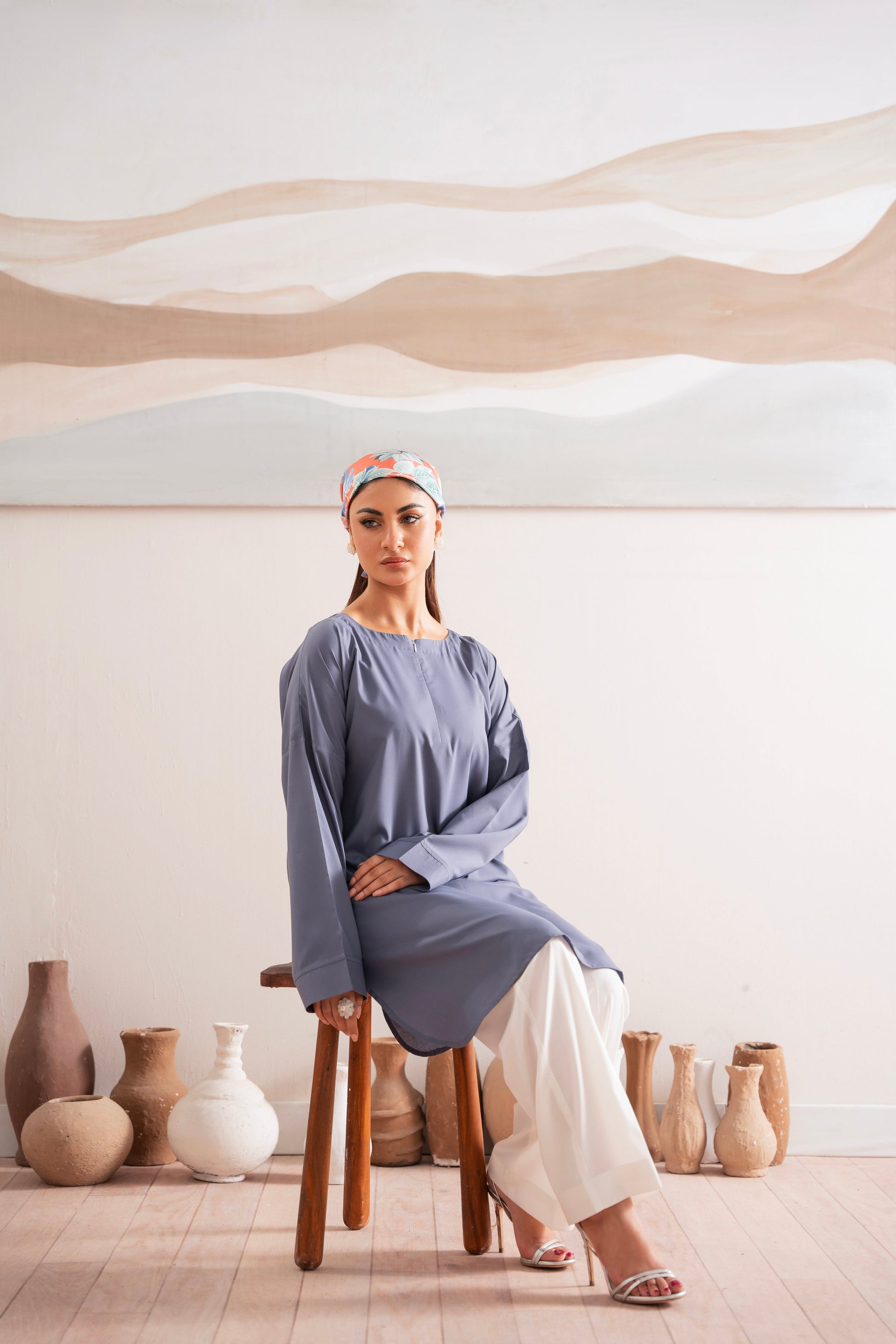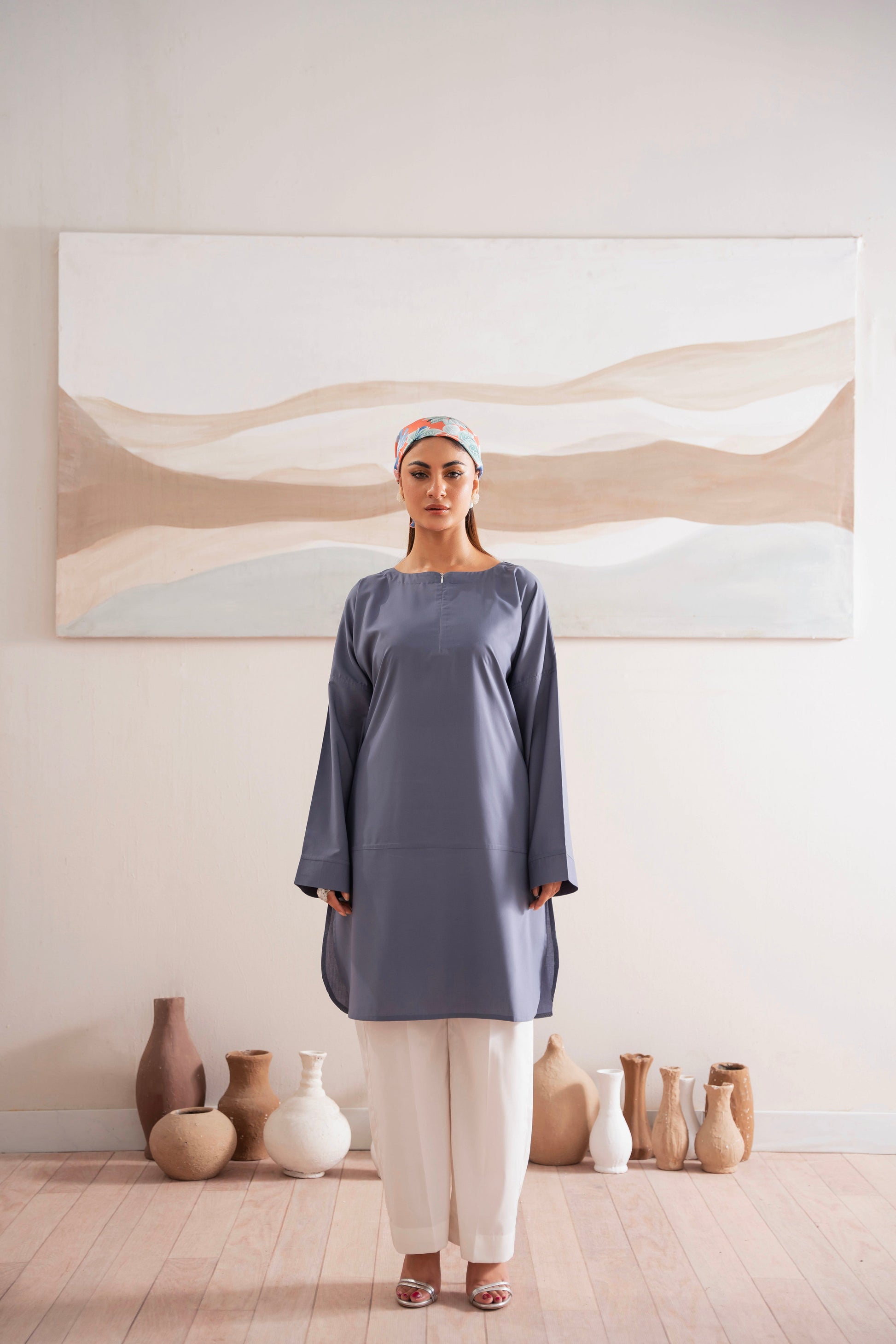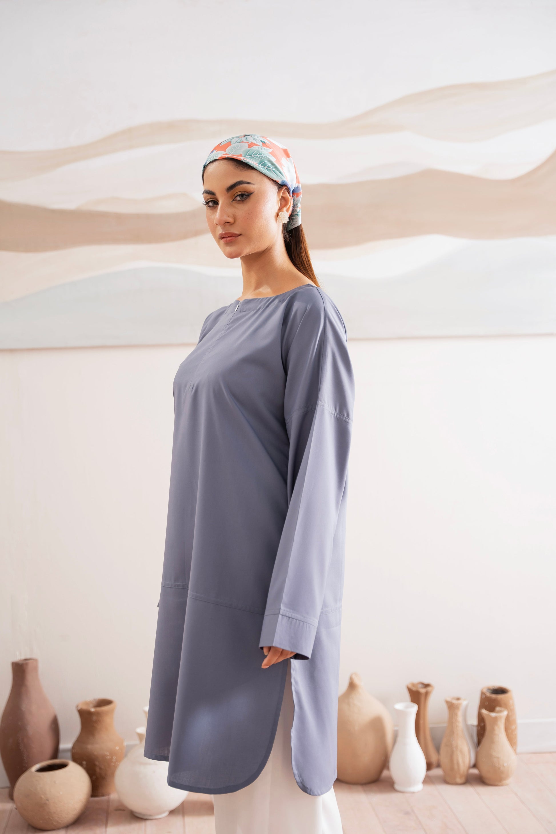 This two-piece dress includes a stylish shirt and tailored trouser. This dress is crafted from our new soft crepe fabric, known for its sweat-absorbing properties, ensuring comfort throughout the day. Designed to blend contemporary Western styles with subtle traditional touches. The dress is shown here in size small, perfectly fitted on the model. Length of Shirt, Sleeve Opening & Shirttail are as per Design. Actual color may vary slightly from what appears on your screen due to lighting.