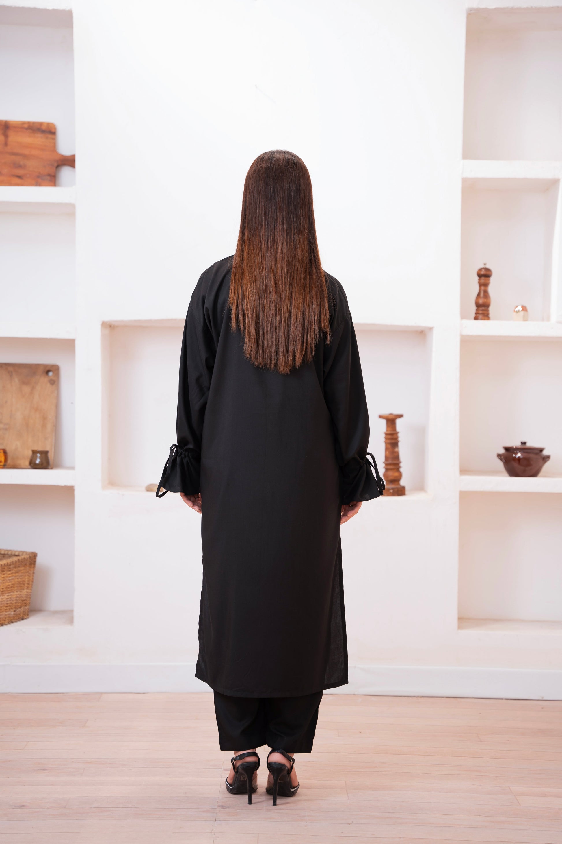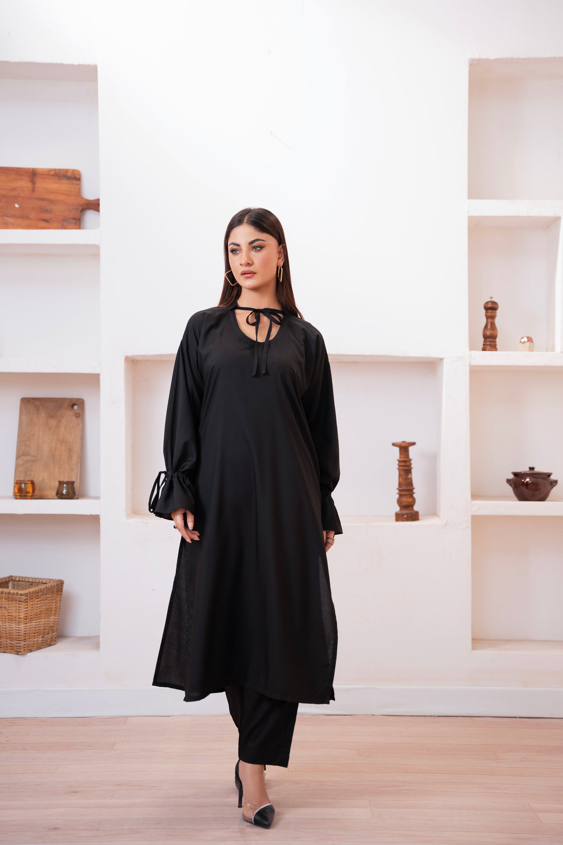 This two-piece dress includes a stylish frock and tailored trouser. This dress is crafted from our new soft crepe fabric, known for its sweat-absorbing properties, ensuring comfort throughout the day. Designed to blend contemporary Western styles with subtle traditional touches. The dress is shown here in size small, perfectly fitted on the model. Length of Shirt, Sleeve Opening & Shirttail are as per Design. Actual color may vary slightly from what appears on your screen due to lighting.