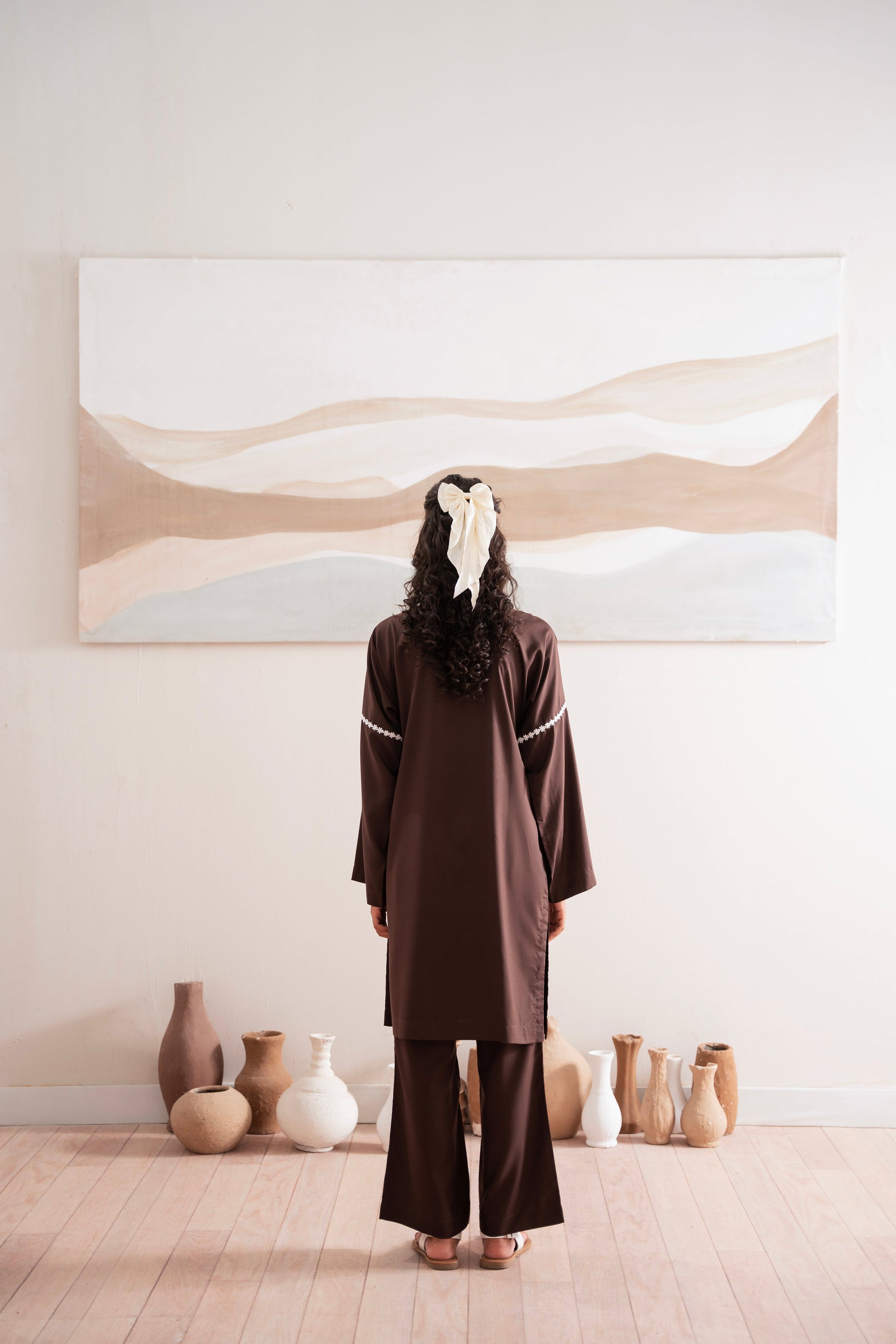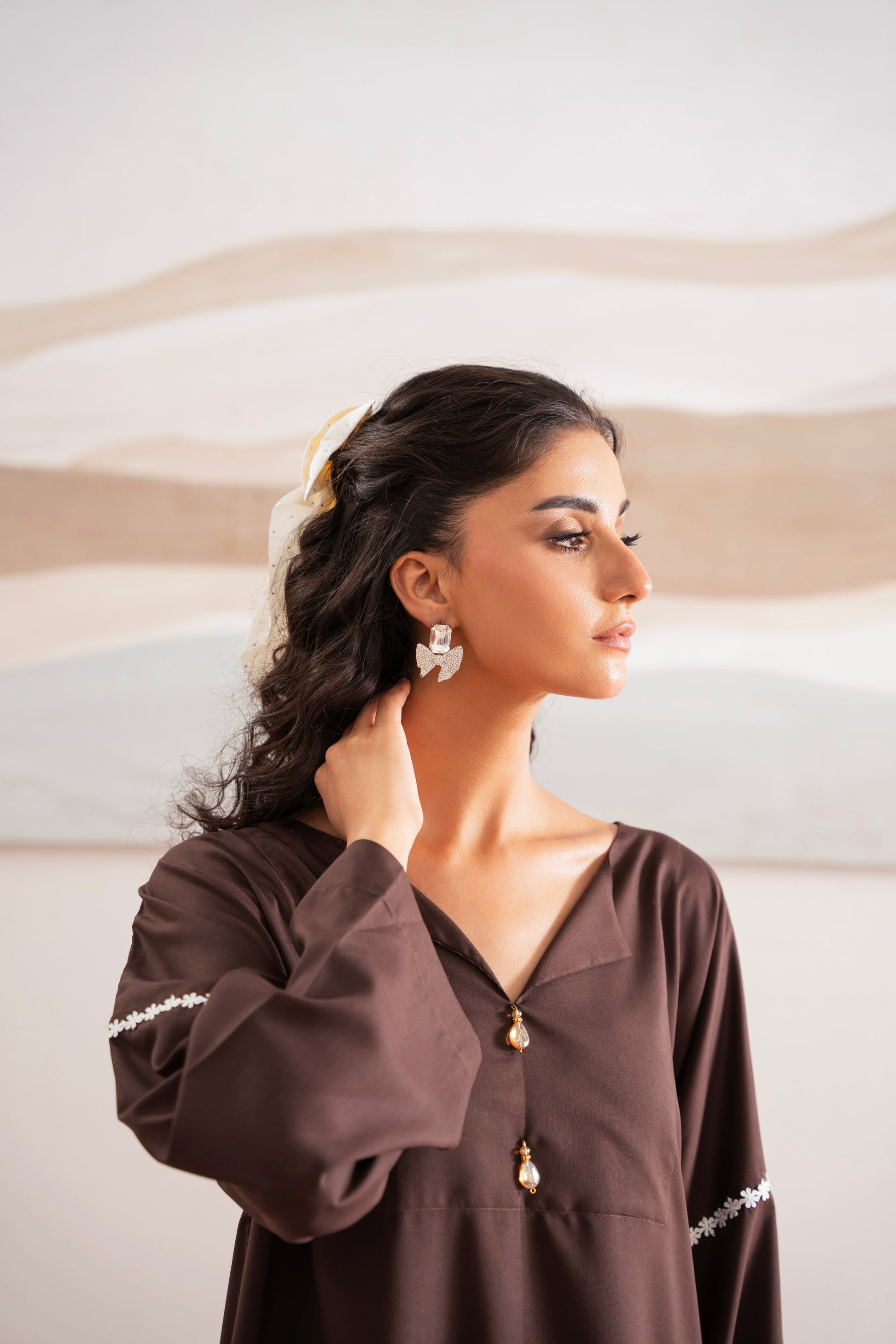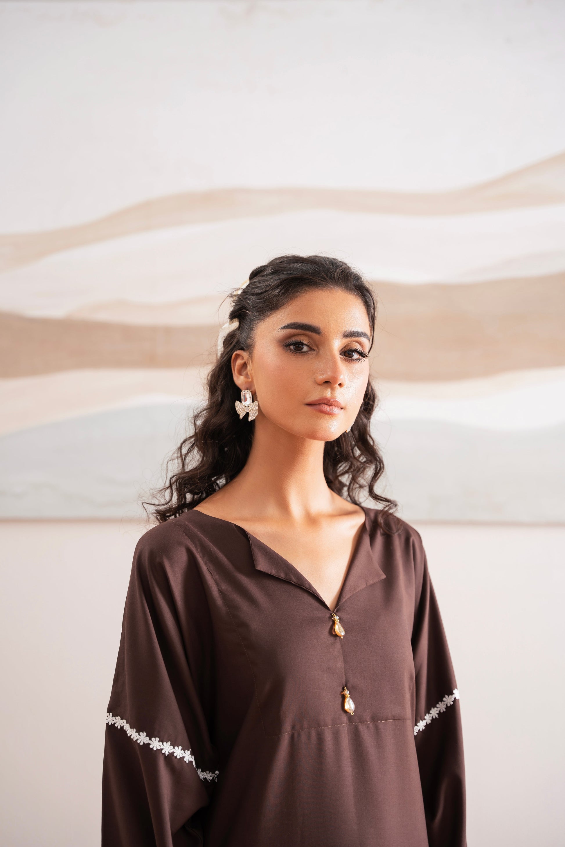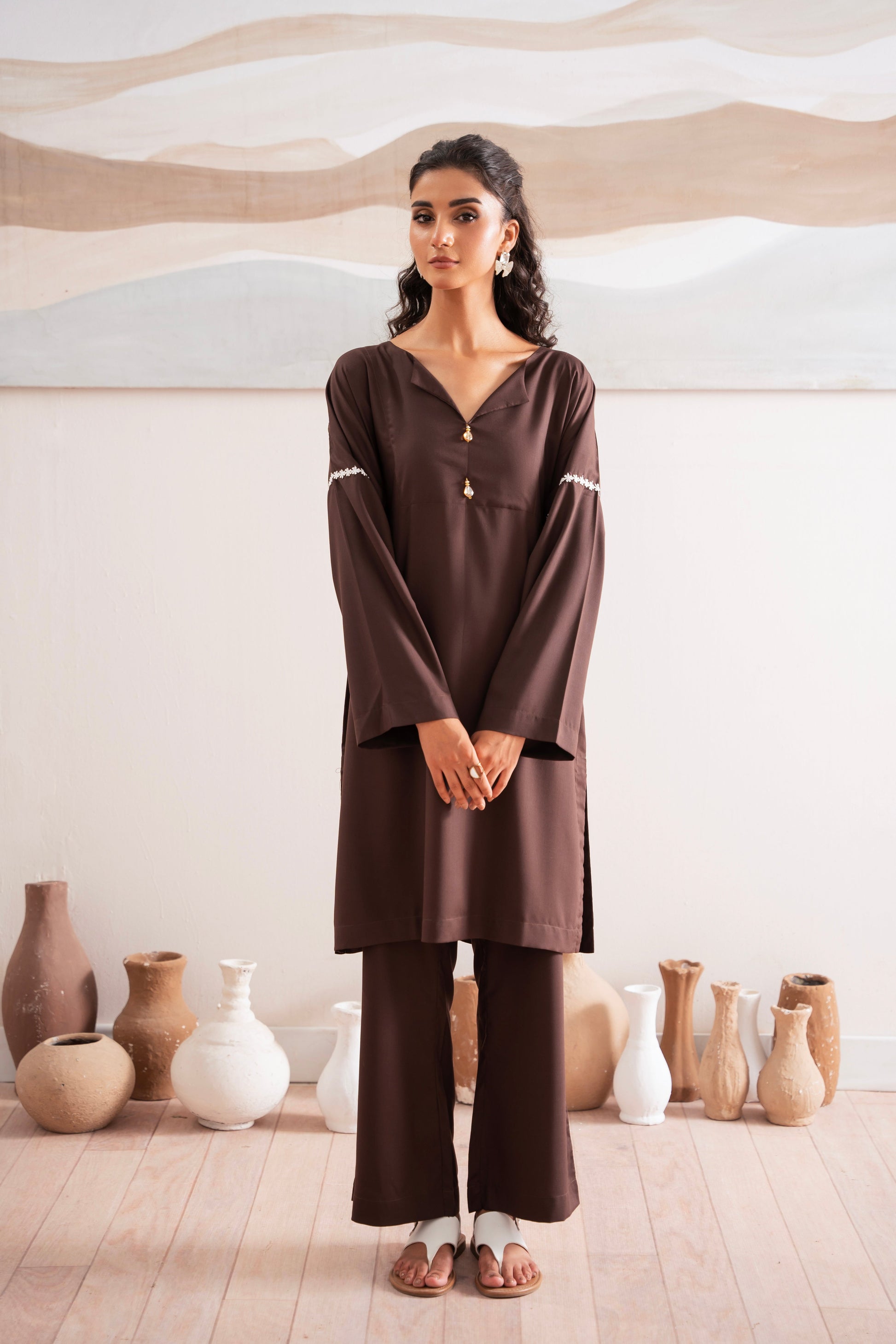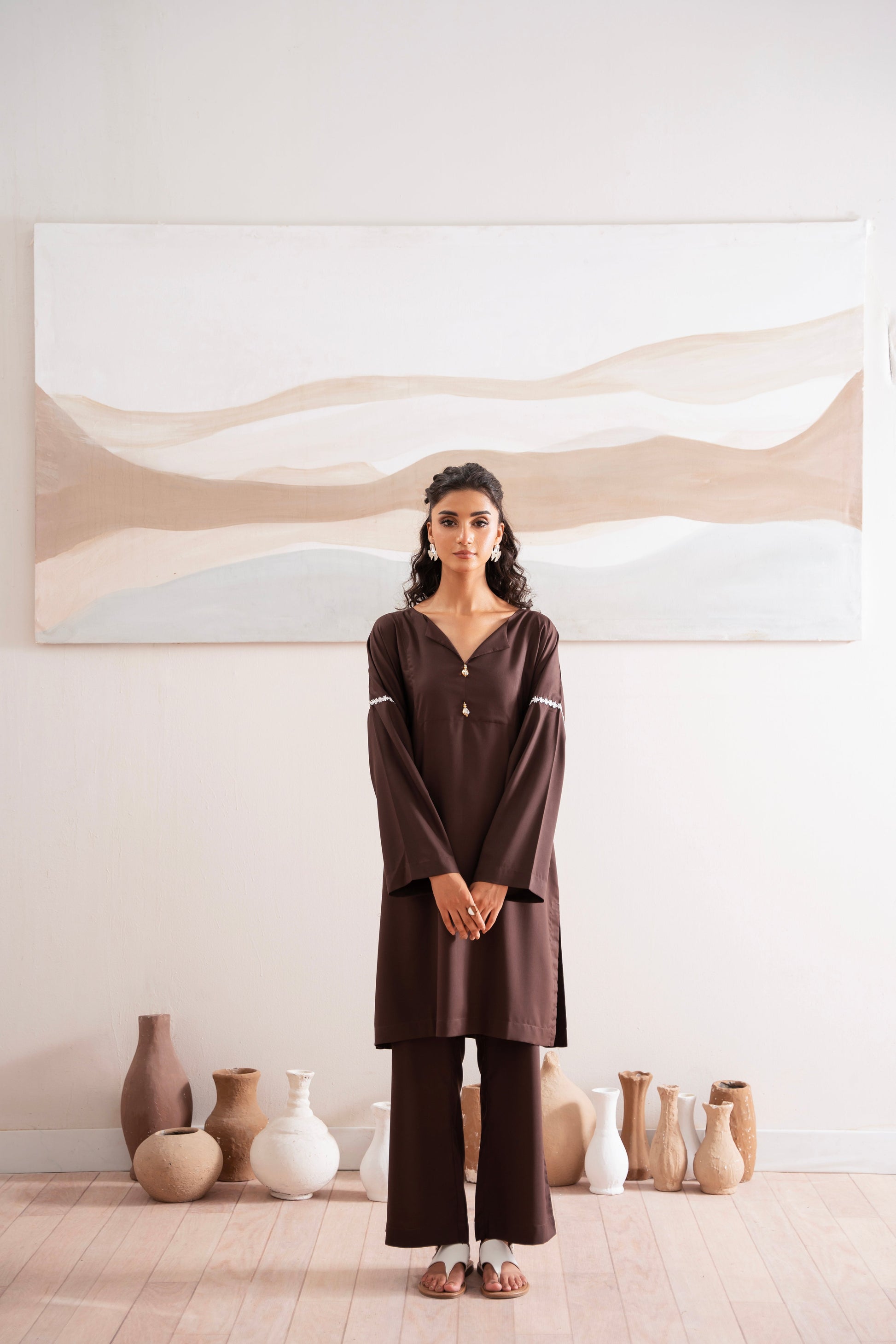 This two-piece dress includes a stylish shirt and tailored trouser. This dress is crafted from our new soft crepe fabric, known for its sweat-absorbing properties, ensuring comfort throughout the day. Designed to blend contemporary Western styles with subtle traditional touches. The dress is shown here in size small, perfectly fitted on the model. Length of Shirt, Sleeve Opening & Shirttail are as per Design. Actual color may vary slightly from what appears on your screen due to lighting.