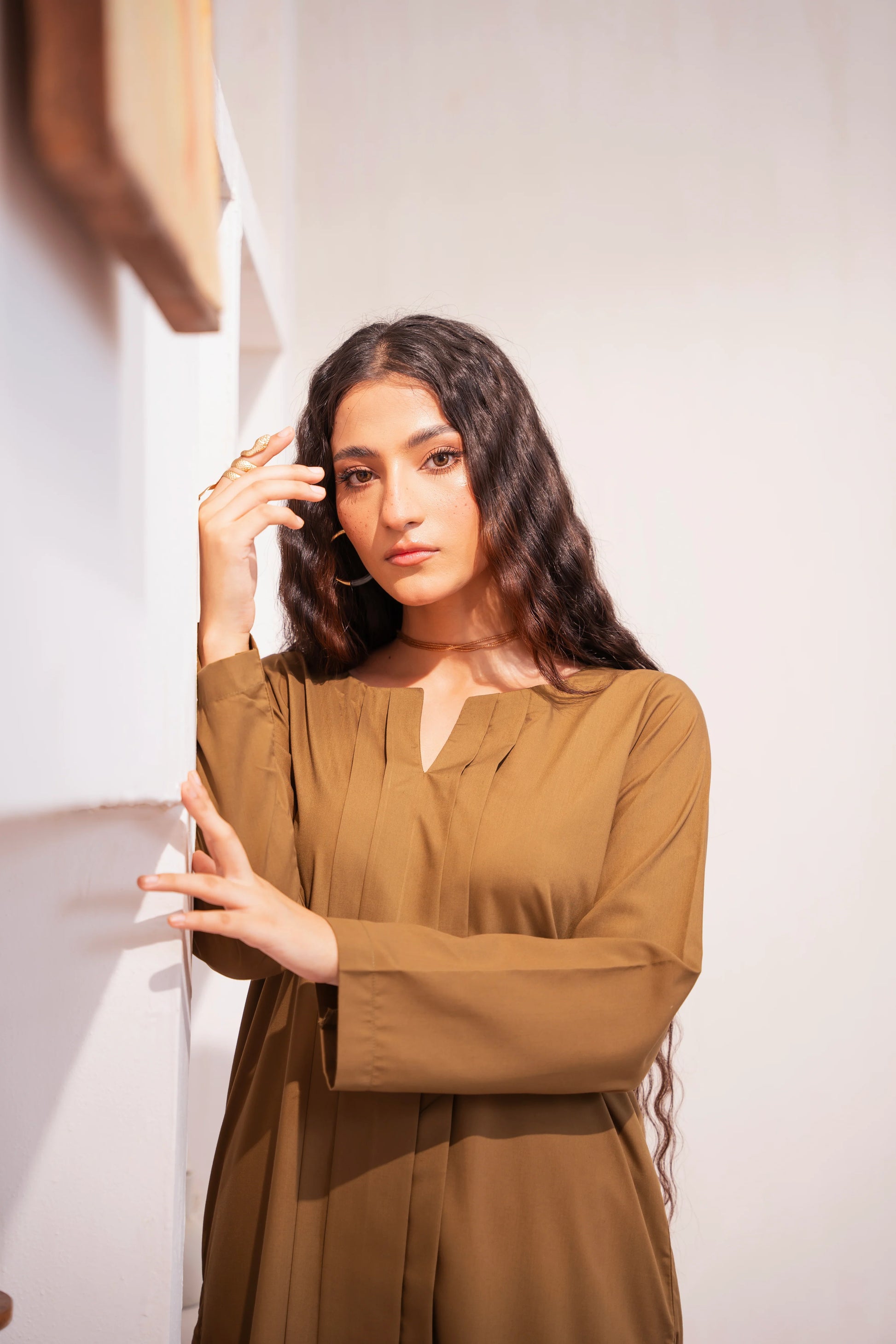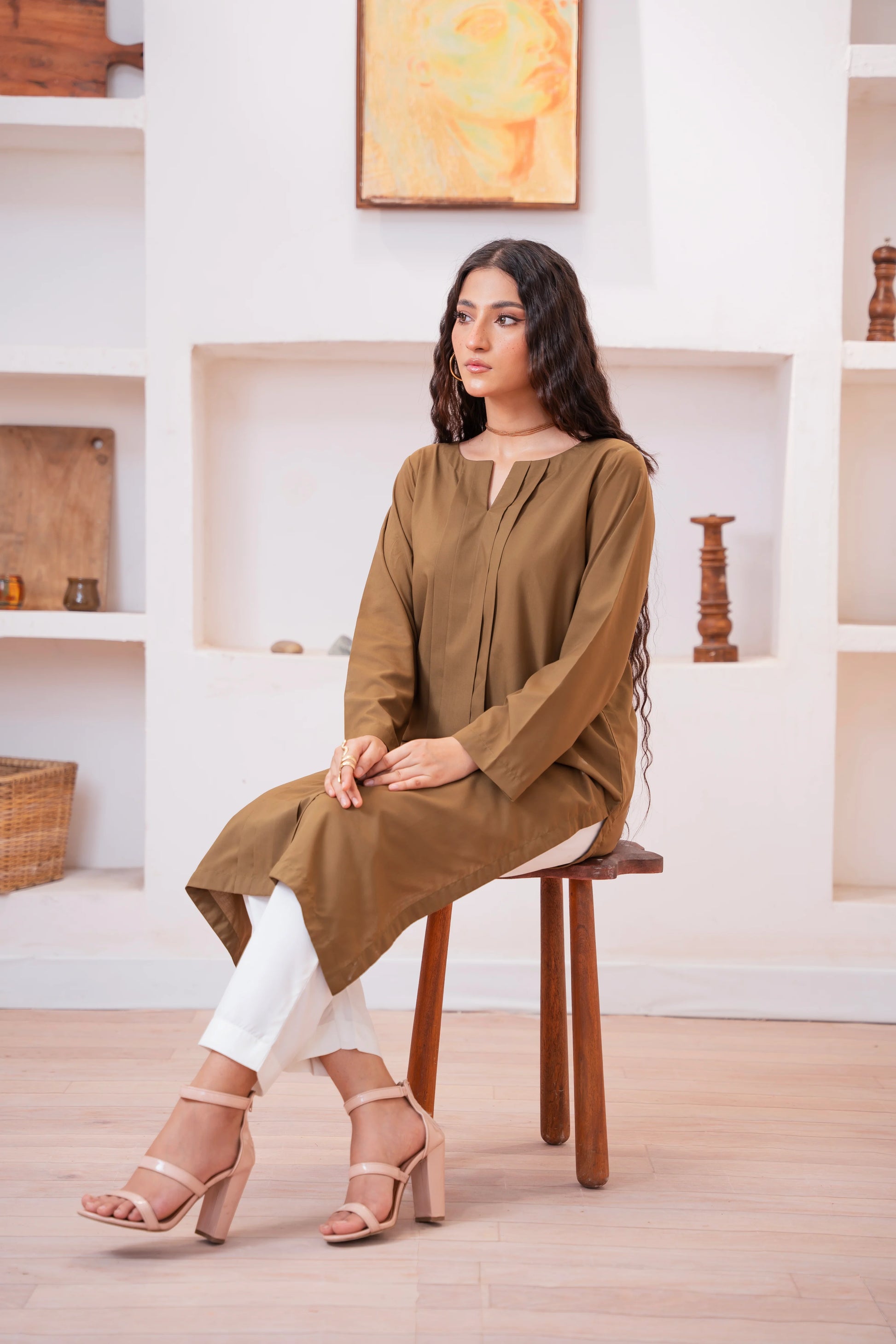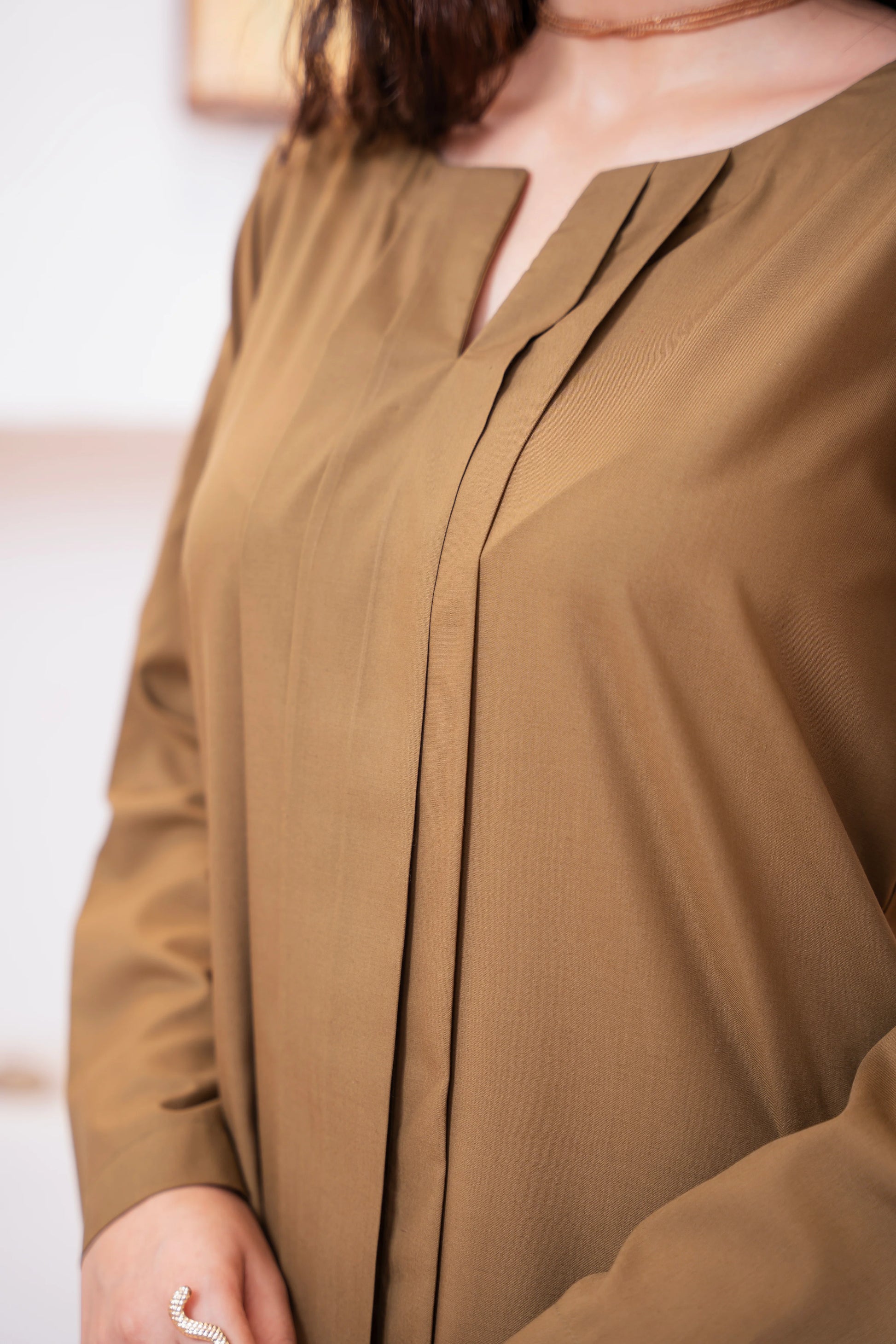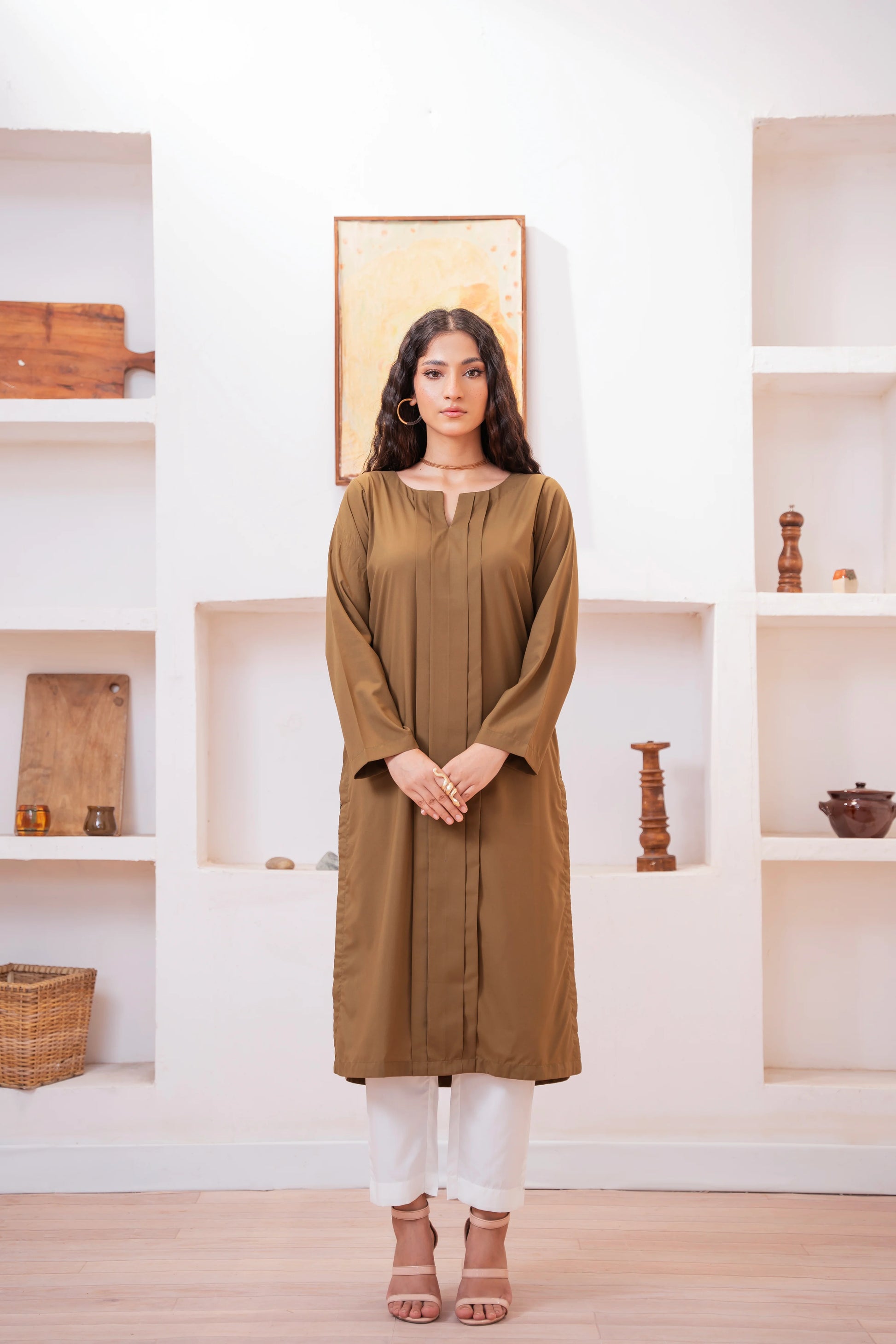 This two-piece dress includes a stylish frock and tailored trouser. This dress is crafted from our new soft crepe fabric, known for its sweat-absorbing properties, ensuring comfort throughout the day. Designed to blend contemporary Western styles with subtle traditional touches. The dress is shown here in size small, perfectly fitted on the model. Length of Shirt, Sleeve Opening & Shirttail are as per Design. Actual color may vary slightly from what appears on your screen due to lighting.