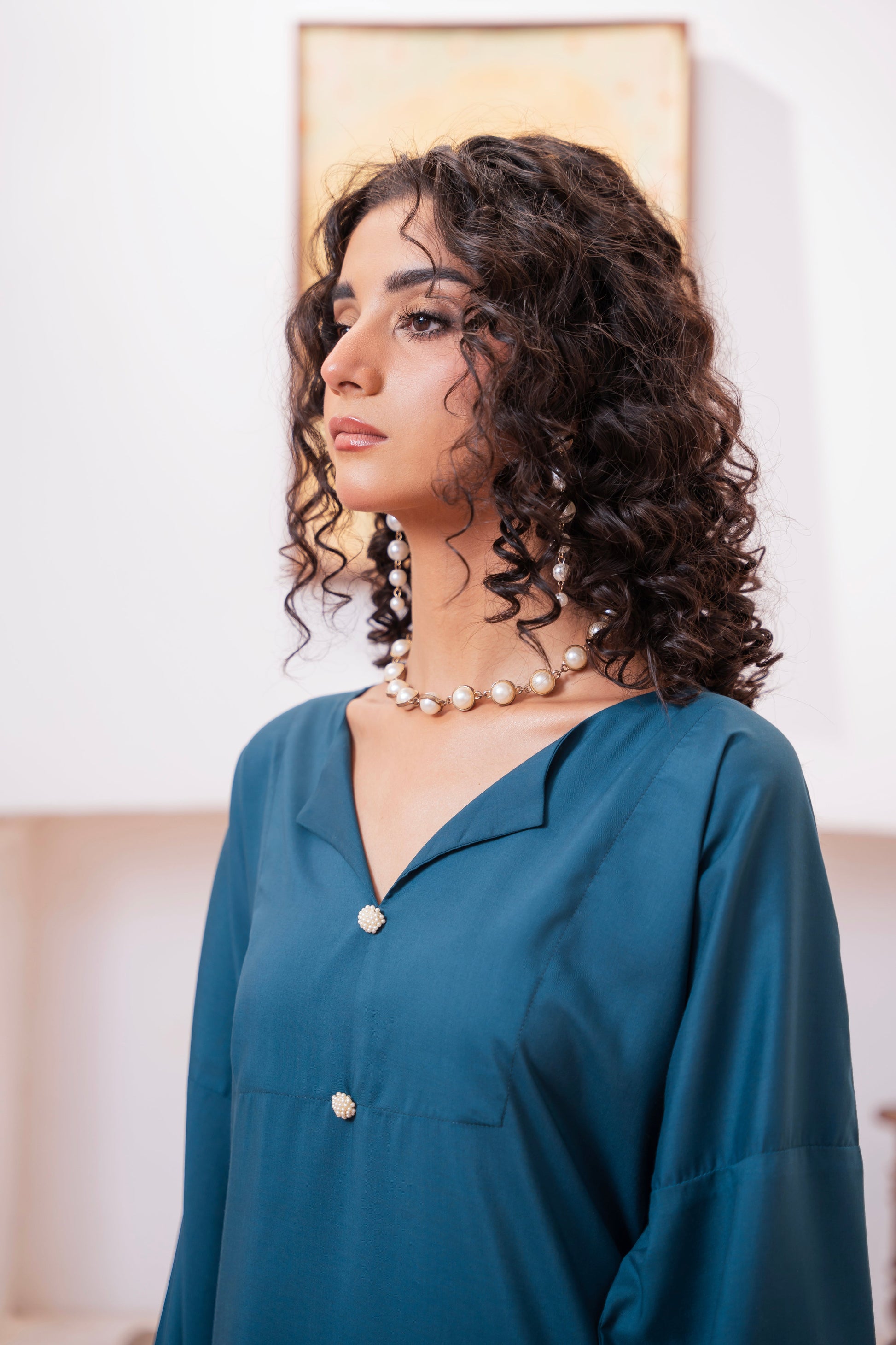 This two-piece dress includes a stylish shirt and tailored trouser. This dress is crafted from our new soft crepe fabric, known for its sweat-absorbing properties, ensuring comfort throughout the day. Designed to blend contemporary Western styles with subtle traditional touches. The dress is shown here in size small, perfectly fitted on the model. Length of Shirt, Sleeve Opening & Shirttail are as per Design. Actual color may vary slightly from what appears on your screen due to lighting.